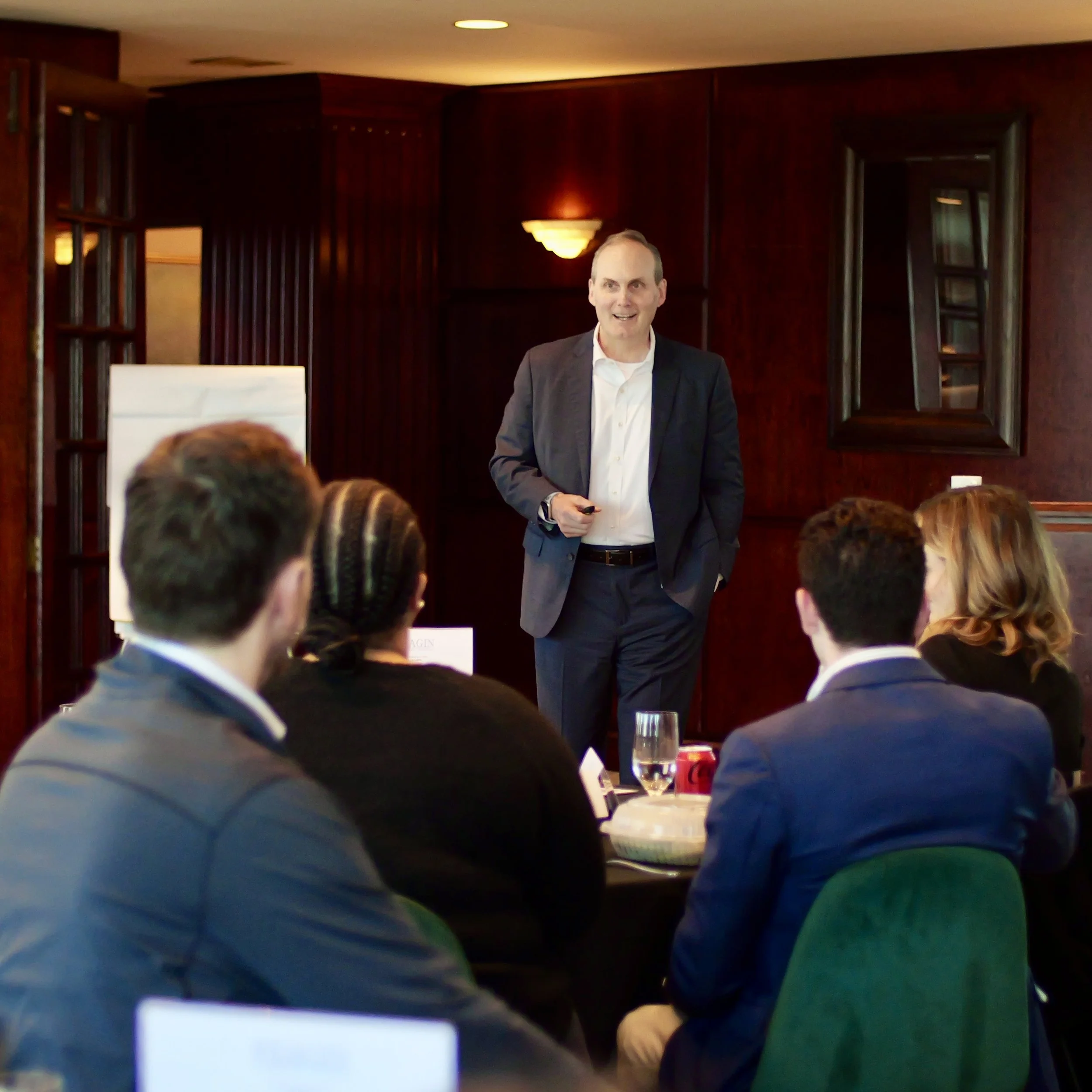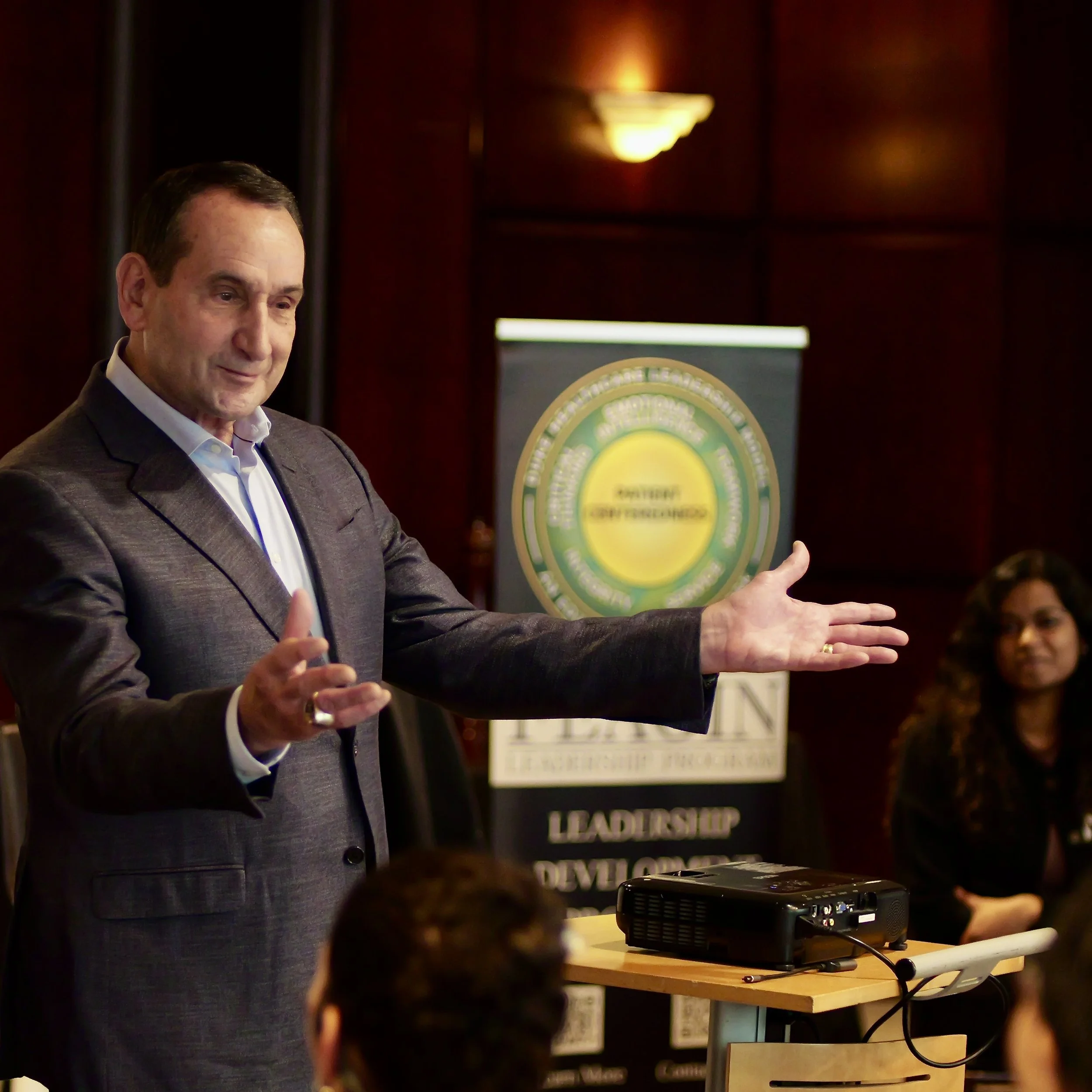Session 1 kicks off the program in September. This session consists of engaging introductions, Dr. Feagin’s essence shared by his sister (Katherine Jeter), defining the Duke Healthcare Leadership Model, leadership lessons learned presented by a physician leader/speaker, an introduction to executive coaching, a deep dive into personal values, scholar team assignments, and team building.